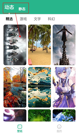 1、设置壁纸 首先用户在进入软件之后,可以点击上方的动态,再在下方的壁纸内选择一个自己喜欢的壁纸进行点击。