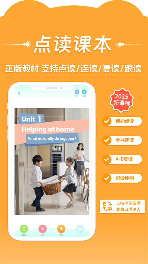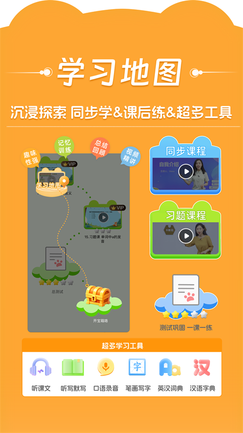 1、大招一:集点读机、英语复读机、学习机于一体,让手机变身为孩子学习小学英语小学语文的的好帮手,游戏与学习巧妙结合,让孩子爱上小学英语语文课程。 2、大招二:全国小学课本全覆盖,课本支持中英双语点读、语音测评、课后练习,学习闯关三部曲提升孩子学习效率,并有单词默写等多种练习模式多方位助力孩子学习薄弱环节。 3、大招三:正版授权小学英语官方教材,无缝同步小学英语、小学语文课本,让家长放心,孩子省心。 4、大招四:大量优秀的小学英语绘本故事、儿童文学与进口图书,帮孩子开阔课外视野,丰富课余生活。 5、大招五:小学英语名师视频课,和孩子进行真人在线一对一语文英语辅导,释放孩子学习效率,提升孩子学习成绩 。 6、大招六:一课一练,小学英语王牌教辅听说练习,让英语孩子再提高。 7、大招七:2000本海外分级阅读,同步美国小学英语教材,每天十分钟,孩子英语变大牛。 8、大招八:包含语、数、外三门学科竞赛小游戏,全国排名,提升孩子小学英语学习兴趣。好爸爸人教译林外研版使用指南
