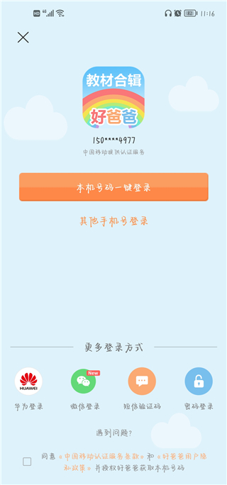 1、在本站下载安装并打开好爸爸苏教译林外研版app。选择登陆方式登陆软件。