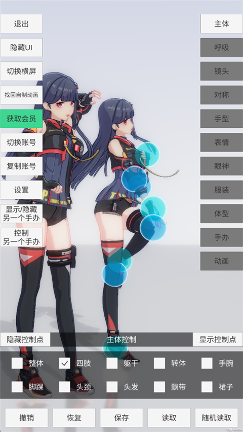 3、点击四肢,青蓝色的球可以控制四肢的移动。