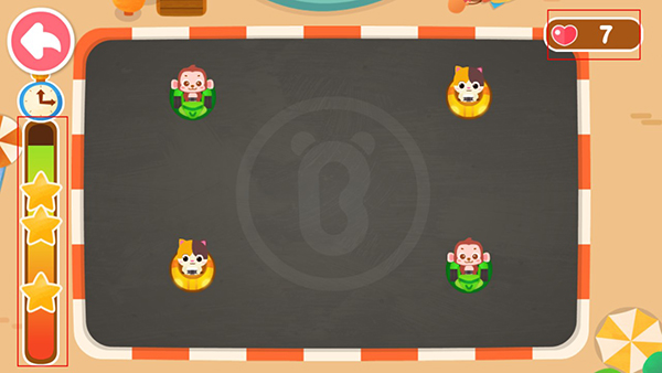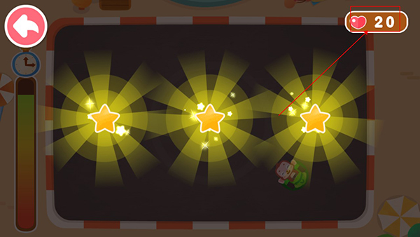 进入关卡之后就可以看到左边有计时器,通关速度越快获得的星星就越多,获得的星星会转换成右上角的爱心哦!