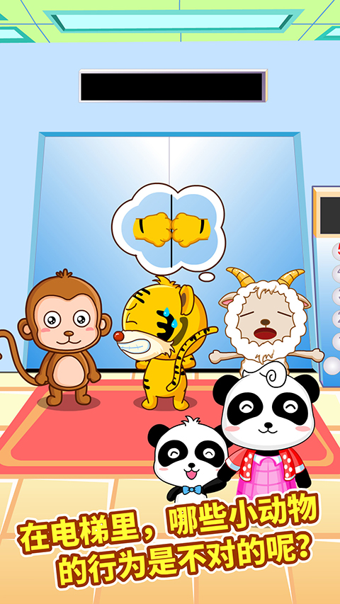 1、【宝宝知识启蒙之马路安全】 过马路要认准斑马线,紧握大人的手,遵守交通规则:红灯停,绿灯行,避开川流不息的汽车,保证安全通行。 2、【宝宝知识启蒙之电梯安全】 在电梯里面可以蹦蹦跳跳吗?电梯门可以倚靠吗?乘坐电梯要注意哪些安全事项呢?快来学习安全乘梯知识吧。 3、【宝宝知识启蒙之商店购物安全】 熊猫奇奇和妈妈被商店里拥挤的人群冲散了,宝宝快带领奇奇走到前台,帮忙说出妈妈的名字,求助前台服务员找到奇奇的妈妈。 4、【宝宝知识启蒙之遇到陌生人】 遇到陌生人过来搭讪,要千万注意不能跟随陌生人走。一旦遇到危险,可以寻找警察叔叔的帮助,平时还要记下爸爸妈妈的电话号码,学会拨打电话。宝宝出行安全游戏怎么玩