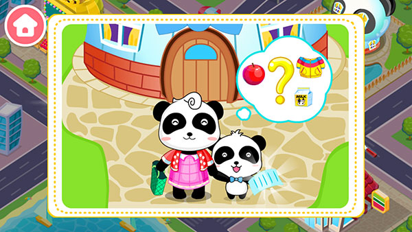 2、游戏的一开始,熊猫妈妈会带着小熊猫出去购物。