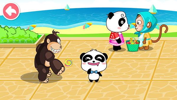 3、熊猫妈妈在购物的时候,会有坏蛋猩猩用糖果诱惑小熊猫。