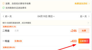 3、最后选择一个行程,然后点击“立即预订”按钮即可完成购买。