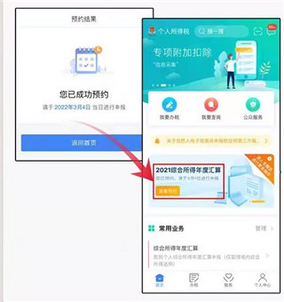 5、提交成功后,系统显示“您已成功预约”页面,纳税人即可在预约日期当天办理年度汇算申报。此外,还可以在手机个人所得税APP首页年度汇算专题栏查看预约情况。