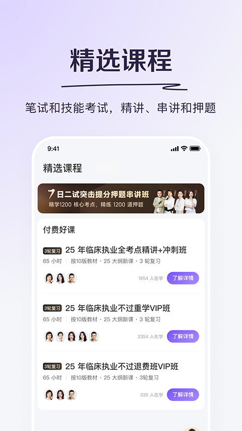 1、海量题库,上万真题,考纲分类强化练习 2、独家解析,名师逐题解析,带你直击考点 3、模拟考场,智能组题,全真模拟 4、精选资讯,医考资讯,一网打尽更新日志