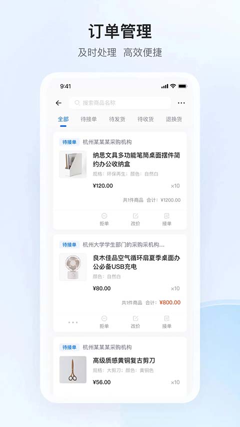 1、可在线即时回复采购人消息!再也不用担心不在电脑前而错过订单商机。 2、支持手机操作订单,接单、发货,订单流程一站式解决。 3、自己店铺的交易额实时统计!安排的清清楚楚,明明白白。政采云商家版app使用教程