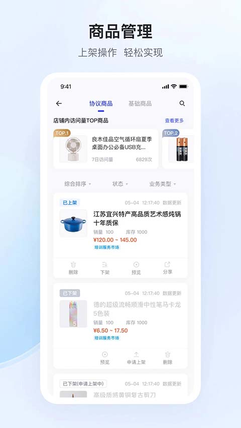 1、在后台“商品中心”中,找到“商品管理”页面,点击【新增协议商品】按钮,正确的填写商品信息,提交审核。审核通过后,商品成功上架。