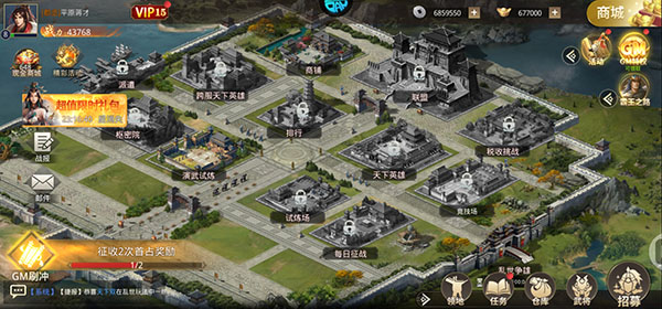 【演武试炼】 1、演武试炼每关通关可获取通关奖励,且只能领取一次。每通关整10关有名将招募令奖励。 2、每次通关都会进行星级评价,目标总星数达到目标可以获得星级奖励。 3、通关过的关卡没有完成所有星级目标时,可重新挑战去完成成星级目标。 4、演武试炼每天根据通关与星级排行发放排行奖励。 【乱世争雄】 1、乱世争雄战局有多方势力参与,进入后在等待其他君主加入时可先攻占城池,扩张势力,征收资源与首占奖励。 2、攻占所有其他敌对势力主城可一统天下,收获丰厚战利品。 3、战局中可以与其他君主缔结战盟,共同合作一统天下。 4、战局结束时如果有多方势力在场,则根据积分结算排名与奖励。楚汉争霸OL手游乱世争雄玩法