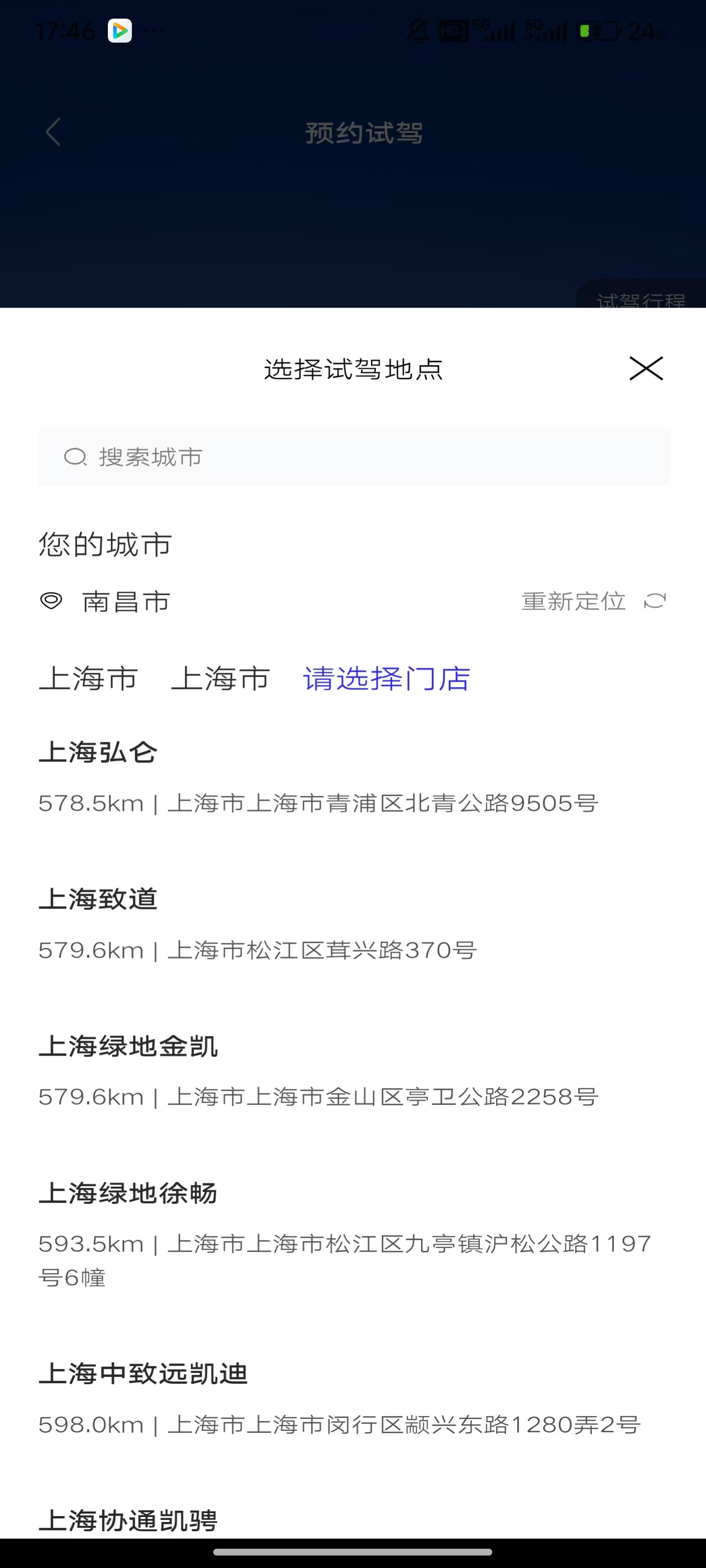 5、选择城市后,选择该城市门店,会自动跳转上页面。