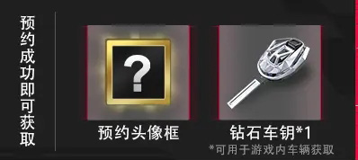 1、预约成功即可获取 预约头像框*1+钻石车钥*1(可用于游戏内车辆获取)