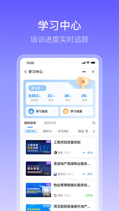 1、融合办公协同软件,融入工作场景,全新、高效的企业培训方式。 2、线上线下结合,培训管理数字化,培训有效果、更有结果。 3、一键部署,轻代码自定义配置,快速定制企业专属学习中心。 4、阿里达摩院深度合作,人工智能技术赋能企业培训。 5、40+标准功能和个性应用,覆盖企业培训全场景、全流程开箱即用。 6、全终端、全协同平台支持,随时随地学习、反馈、互动。 7、50+职业岗位课程,100+顶级合作机构,一站式的课程设计。 8、全行业、10万家企业、2500万职业人能力提升的一致选择。更新日志