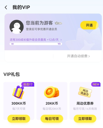 用户开通会员每日可领取相应KK币