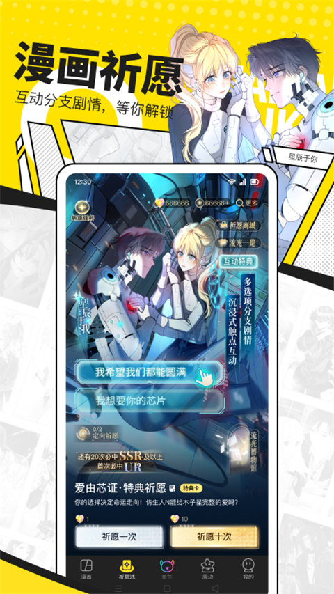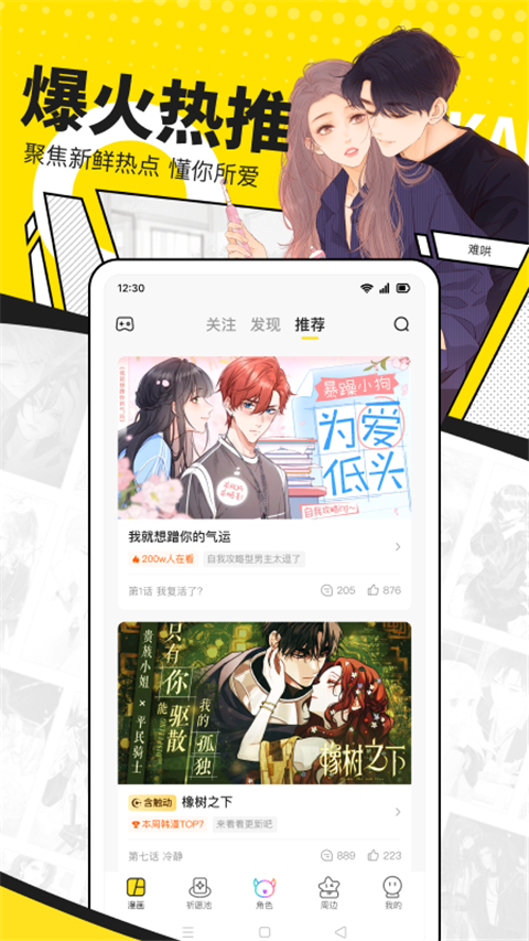 少女漫画——不仅仅是甜甜的恋爱! 《难哄》:再次重逢,死对头竟成酒吧头牌?和老死不相往来的傲娇前任桑延意外成为合租室友,温以凡的蜜恋罗曼史在这小小的屋檐下暧昧展开...... 《我就想蹭你的气运》:衰神少女重生缠上傲娇太子爷只为蹭他的气运。“蹭了我的就不许去找其他人了!”纯情小狼狗低头委屈求爱。 《橡树之下》:口吃内向的公爵家小姐遇上温柔宠妻的直男骑士。娇小可爱雪媚娘和糙汉狼狗脏脏包先婚后爱的宿命互补爱情史。 奇幻世界漫画——在异世共享浪漫之旅! 《再见,我的国王》:穿越进已逝古国的张黎只为寻找曾经朝夕相处的“石像”,却发现昔日温柔粘人的他成了冷漠无情的“暴君”。这一次,能否与他成功相守...... 《人鱼陷落》:相依为命又互相“利用”的两个实验体间的“相爱相杀”史,战术指挥大佬白狮alpha和呆萌傲娇人鱼omega相互依偎的陪伴之旅。 《说谎的小狗会被吃掉的》:被狡猾的狐狸发现假装肉食动物的秘密!说谎的可爱小狗可是会被狐狸牢牢缠住的。不过,这只狐狸似乎也没有那么可恶......? 爽文大女主漫画——美貌与智慧并存,领略女王风采! 《暴君一家靠听她心声续命》:开局穿书悲惨冷宫公主处处被污蔑?!一句心声意外让暴君变身满级宠爱父君。 《炮灰闺女的生存方式》:穿越成残暴君王不受宠的小女儿,为了活命只能逃离君王,却不想一不小心成了暴君的心尖宠?这宫廷之争,到底要如何生存......? 《这一世我来当家主》:穿越成第一家族头脑出众的私生女却被恶毒亲戚夺走一切。重活一世,蒂亚决定成为家主,重振家族帝国巅峰! 热血少年漫画——异能修仙末世悬疑全部搜罗! 《死灵法师:我即是天灾》:游戏降临现实,世界规则颠覆。转职成为唯一性隐藏职业——死灵法师,从此高坐骸骨神座,行走生死之间。 《全球诡异时代》:全球进入以鬼制鬼的人鬼共存时代,林风靠着系统培养无敌鬼灵,称霸诡异复苏的世界。 祈愿模块——解锁更多打开漫画新姿势! 你心中的漫画人物不仅可以动起来,还可以按照你的选择演绎不同的故事! 每次祈愿必有回响,解锁专属于你的沉浸式体验。你可以不再上下滑动,直接观看全部内容;也可以与人物交互触发下面情节;甚至可以参与其中帮助人物做出选择!更新日志