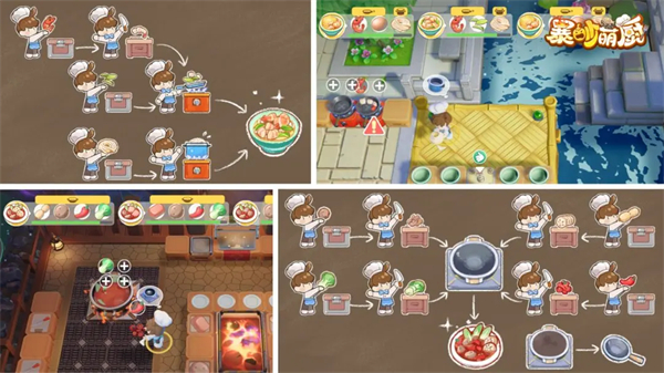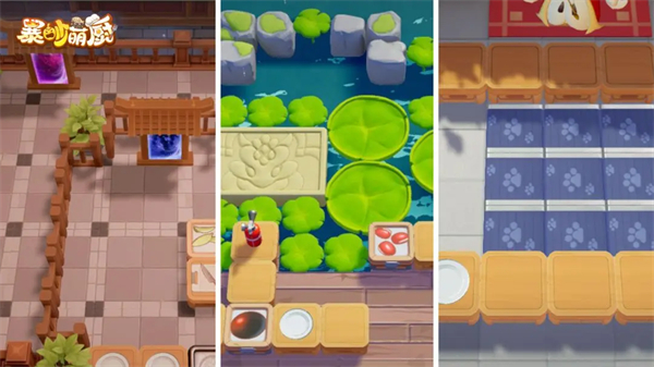 多样地形,烹饪考验来自厨房 从料理教室到江南水乡,从妖怪客栈到云上国度,超多厨房地形正在持续更新,速来《暴吵萌厨》接受厨艺小考! 不知通往哪里的传送门、踏过后就会消失的荷叶、强行拉走你和食材的传送带、按下会改变厨房格局的神秘按钮……展示精湛的厨技,战胜形形色色的小机关,才能顺利完成订单。