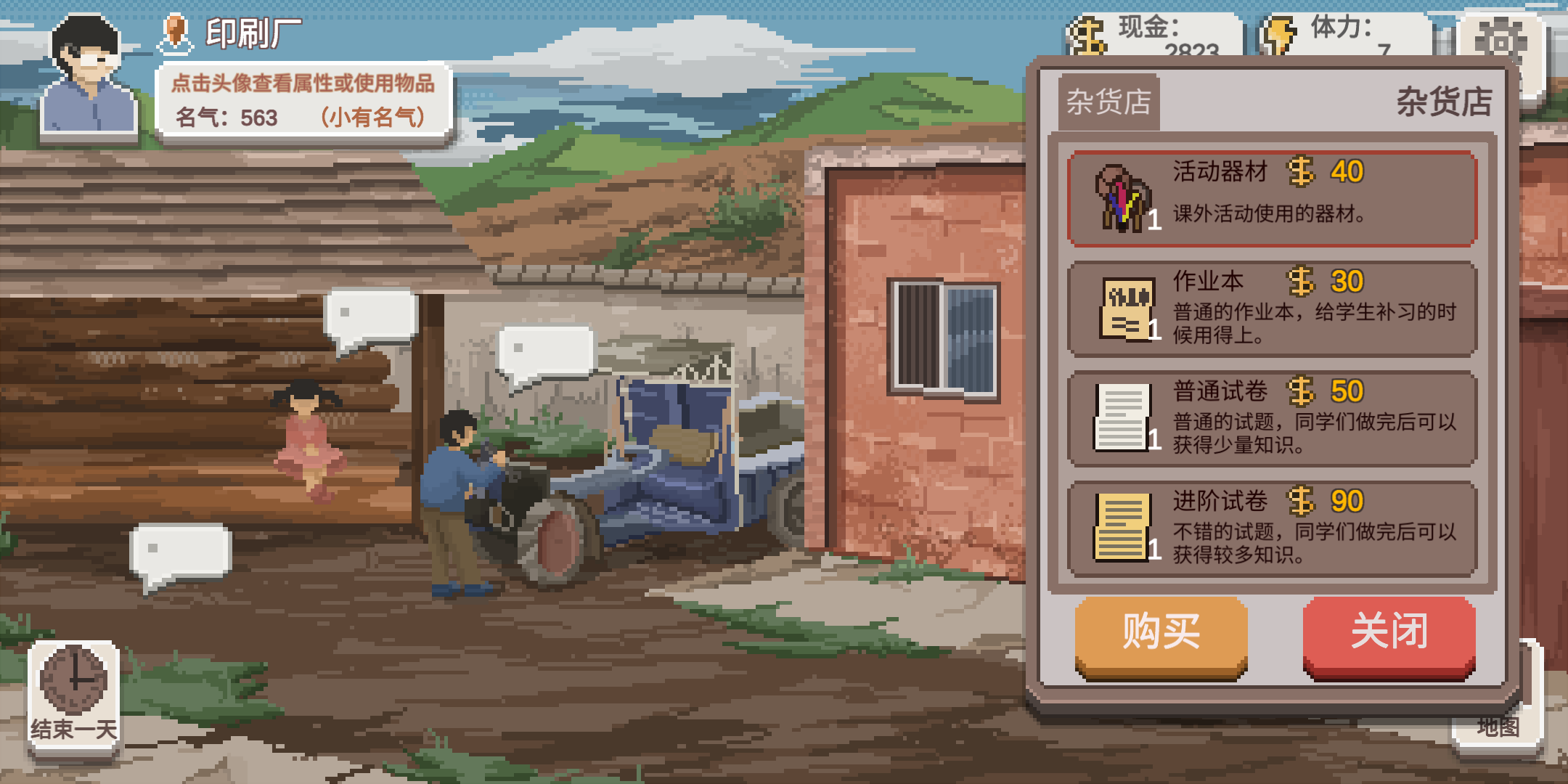 2、 进入游戏,映入眼帘的是我们的工作室,在这里我们可以温习课程,可增加教学经验,教学经验可以升级我们的教学等级,提升教学能力效果,等级也有钓鱼,厨艺,种菜,最高6级,也可以看村民们的委托信,可以根据信中指示接受村民委托,会有名声和其他奖励,名声影响获取学生的品质和卖东西的钱下限,还可以查看学生册,观察学生背景,可以记住之后注意与学生谈话时的话题,另外还可以修葺,可以永久提升部分属性增益。