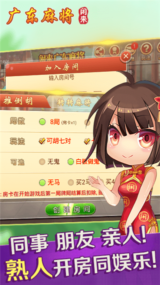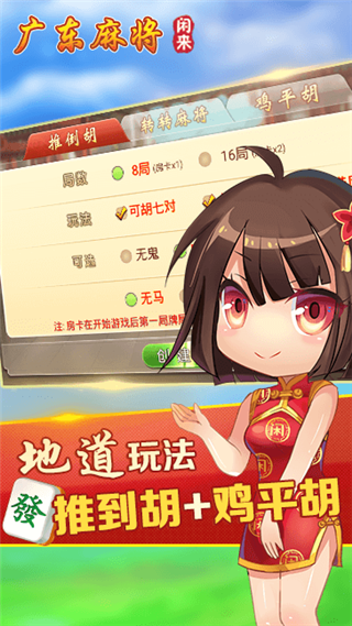 闲来广东麻将官方正版是一款在广东非常流行的麻将游戏,规则体系和历史发展源远流长,主要规则便是鸡平胡、推倒胡等玩法,其中推倒胡是深圳、东莞等地区目前最为流行的打法,不许吃牌只许自摸,并且讲究杠牌、买马,打法简单节奏快速。