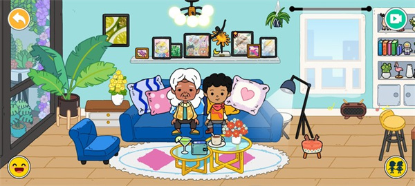 2、来到了谁的住宅呢?充满温馨感的舒适客厅,这是当下流行的克莱因蓝色沙发,点击人物的图标可以呼唤出城市中的小伙伴,请他们在沙发上休息一下吧!观察客厅的布局,你的家里也像这样整齐吗?往右边拖动画面可以参观厨房和卧室,这里就是妈妈每天为你们做三餐的地方,做饭需要用到的餐具、食材和调料,你都能认得吗?