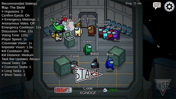1、要小心 因为船员中的一个或多个随机玩家是企图干掉所有人的冒名顶替者!最初是作为派对游戏创建的,我们建议在局域网聚会或在线使用语音聊天与朋友玩。享受Android、iOS和PC之间的跨平台游戏。 2、冷静思考 通过完成任务来准备飞船或驱逐所有冒名顶替者来赢得胜利。迅速反应以撤销冒名顶替者的破坏行为。检查管理地图和安全摄像头,以监视其他船员。立即报告任何尸体,开始讨论谁是冒名顶替的嫌疑犯。 3、召开紧急会议 讨论可疑行为投票驱逐可疑的冒名顶替者。干掉船员和陷害旁观者。假装运行任务,与机组人员融为一体。偷偷穿过通风口在船上快速移动。利用蓄意破坏造成混乱,并分裂船员。 4、关上门诱捕受害者 定制:选择颜色和帽子。很多游戏选项:添加更多冒名顶替者,更多任务,等等!从主机列表中快速找到在线游戏。游戏中的文字聊天。丰富的不和谐整合。游戏亮点