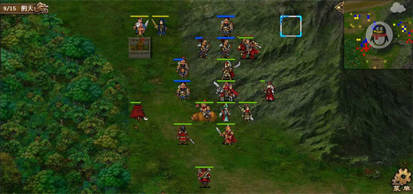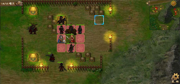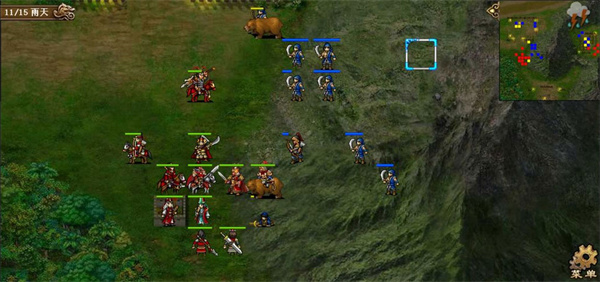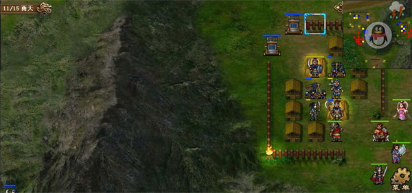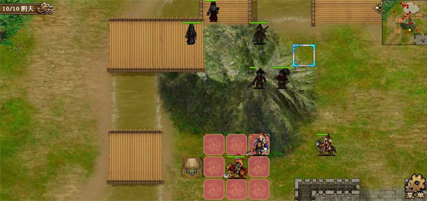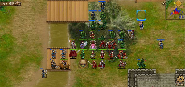 第五六七回合,许褚小分队得到强行后奔袭乌巢,其余人解决长枪队,站位上要有意识的往左上挪,这里第六回合许褚本可以更上去一格提前触发乌巢剧情,但为了主力准备的更加充分还是晚一回合触发。第七回合触发奇袭乌巢剧情后,淳于琼会减防,正面敌军除袁绍大本营本部外都会出击,故第七回合末让吕布往山上靠,吸引山上的敌军往左侧跑,千万不要让他们去增援乌巢了。