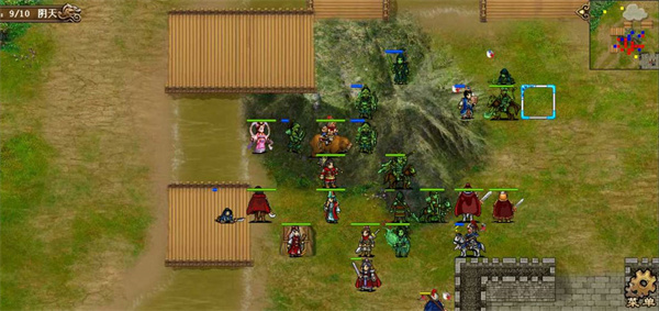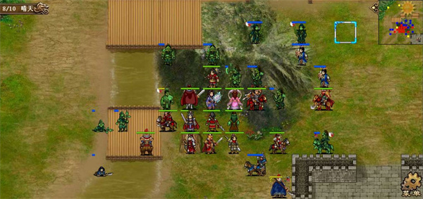 第九回合小夏将曹操左侧弓兵击退,荀彧先水龙吕布身边的弓兵,再被荀攸回归后斜向刷4人海啸,吕布上去迎击山贼们,靠先手刷反击,大夏继续到处收割残血