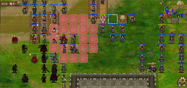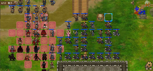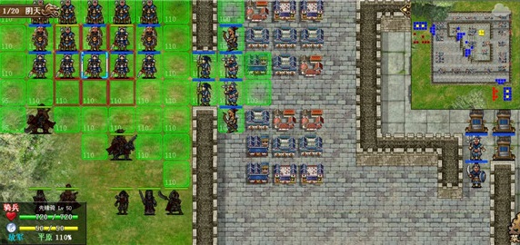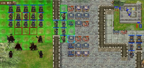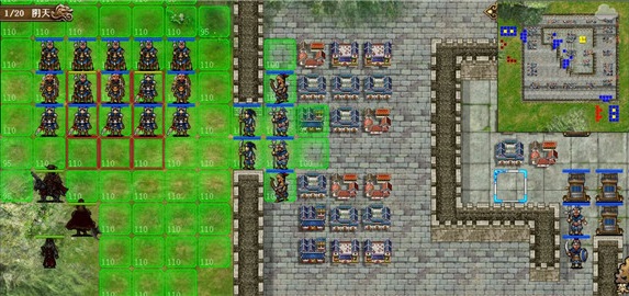 很多人会问,杠是什么字,杠就是麻将里的杠,4格成杠,中间隔了两个位置如图,关羽和曹仁形成了杠字卡位,靠左的骑兵被两人限制,无法越过但是靠右的骑兵,很显然,在往右行动的方向并没有受到太多的阻碍,很显然,曹仁与墙壁之间的卡位失败了如果我们加上一个曹操形成口字卡位,就可以阻碍所有敌人,这就是为什么很多萌新在初见濮阳三时,感到很难打,就是因为不知道只要三个人,就能阻止所有敌人的行动。