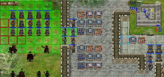 田字本质上是日字的变种,不过多说明,但是大家可以思考一下,站在关羽和曹操对角线中间的那个敌人,行动力是怎么样的(大师兄锁住了何金银)