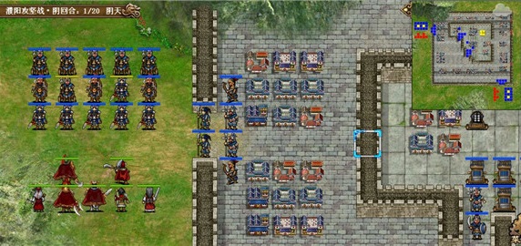 选守城是为了多3个回合,并不是真的傻乎乎的守城,开局从左侧出城,李典先上强行,张辽荀攸给许褚曹洪回归,让他俩先占住营地