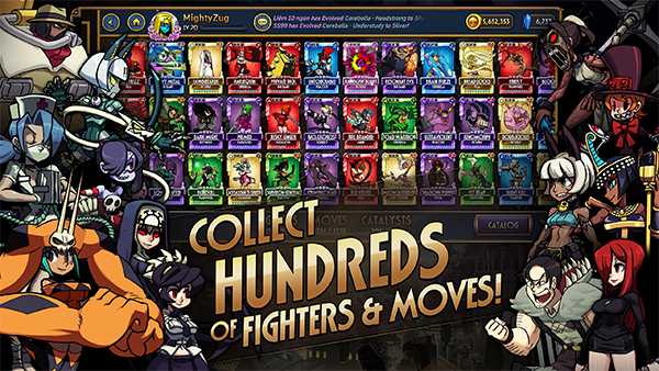 1、人人可玩的格斗游戏 - 专为移动设备设计的自定义控件,让你只需轻轻一点或一滑,就能使出各种惊人的招式和连击。 - 格斗游戏的新手?你只需专注于战略决策,其它交给战斗辅助即可。 - 格斗游戏的老手?你可深入探究战术选择、独特的连击、浮空技巧等等! - 一款人人都能玩的格斗游戏,终于来了! 2、完整的RPG进度 - RPG玩家将会得心应手! - 收集数十个角色,且每个角色都可以各种方式定制,从而适合你的游戏风格! - 升级并进化你的斗士,使其发挥最大潜能 - 解锁每场战斗之前可以升级和配备的特别招式和绝招,并选出最佳的装备! - 组建最多3名斗士的团队,寻找能最大限度发挥协同作用的最佳组合! - 探索不断增长的角色集合 3、游戏模式 - 对战模式 - 在实时在线战斗中对战其他玩家! - 故事模式:在骷髅女孩摧毁新卫城之前寻找到她! - 竞技场:与其他玩家较量,以解锁新的斗士! - 每日活动:每日增加角色专场活动,你能场场都赢吗? - 裂隙战斗 - 建立好防御工事并挑战其他玩家,以赚取稀有的奖励! - 训练:练习连击,尝试不同的团队组合,精进你的技能!玩法介绍