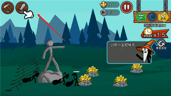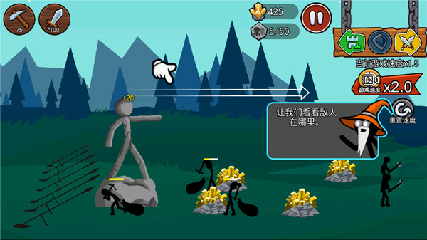 1、获得高分的方法 因此在游戏开始的时候玩家们首先需要购买一些挖矿的小人来帮助我们制造出更多的金币,这样在后期才有足够的金币去购买战斗的小人。