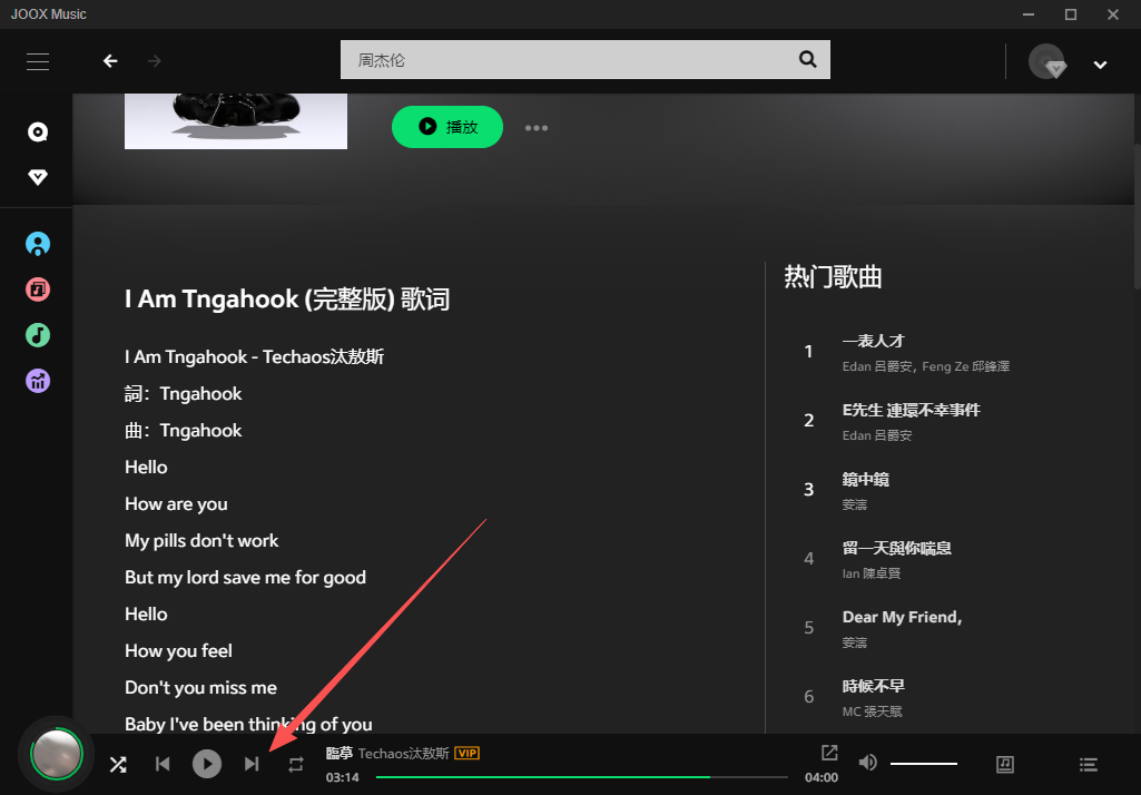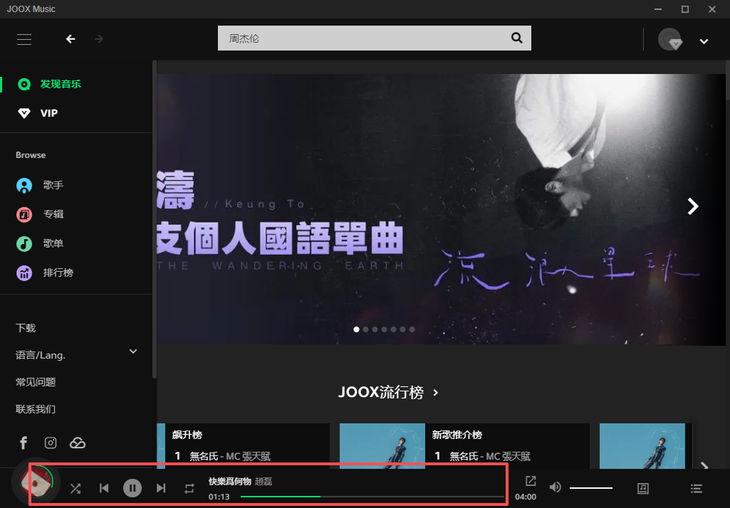 若不在播放页面时,你也可以通过下方播放器播放和暂停音乐。
