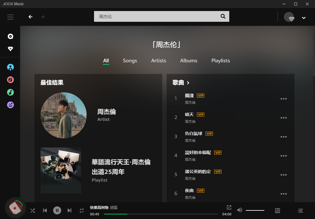JOOX Music是一款由腾讯推出的音乐流媒体软件,它拥有超过4000万首歌曲的庞大版权曲库,涵盖流行、摇滚、粤语等多种音乐类型,并支持高品质乃至无损音质的播放。JOOX电脑版还具有包括带滚动歌词的卡拉OK功能、基于用户喜好的个性化歌单推荐,以及融合了直播互动、短视频和社交分享元素的音乐社区,让用户不仅能听音乐,还能与喜爱的歌手和其他乐迷交流!感兴趣的用户不妨下载一试。