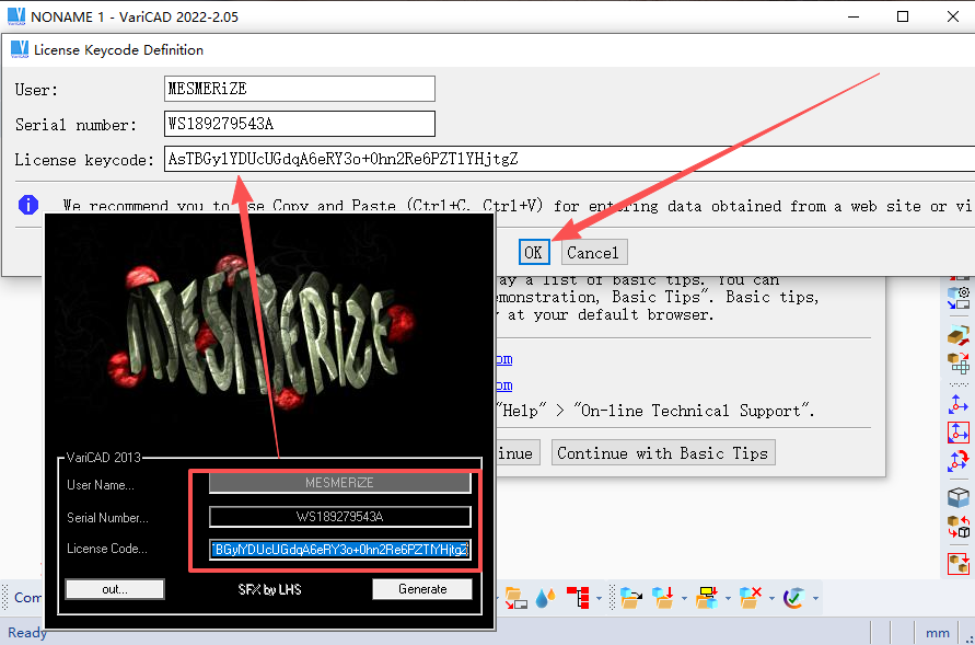 11、将激活文件中的序列号等信息复制到软件对应位置,点击OK。