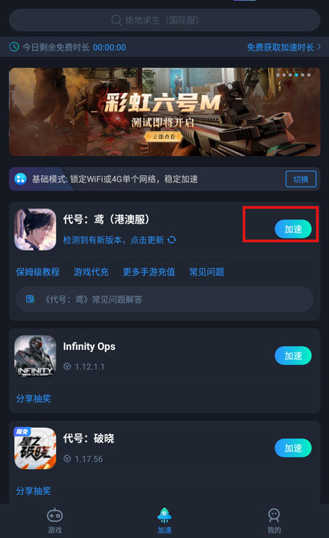 1、首先在本站下载安装代号鸢港澳服,然后打开手游加速器,在加速器内启动游戏。