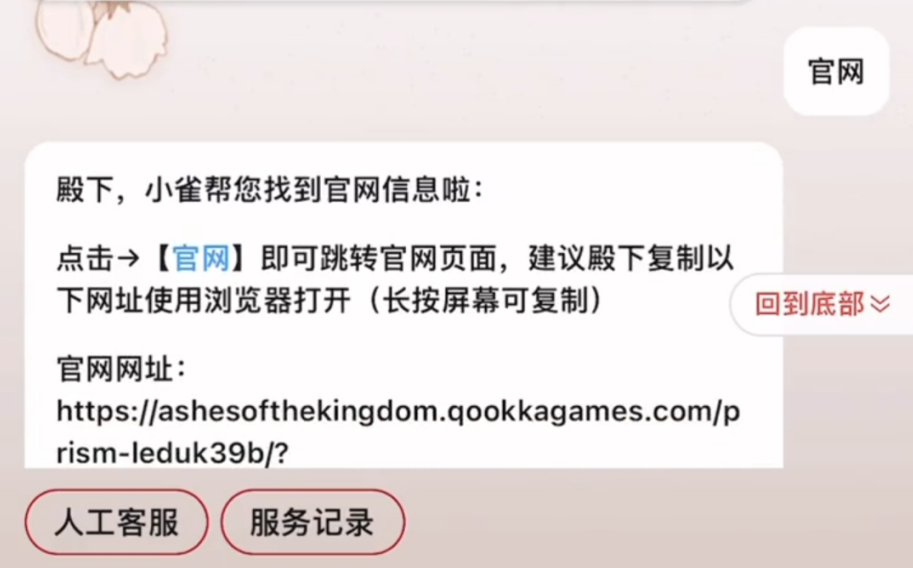 1、找到游戏内客服发出官网两个字,客服会自动回复官网链接,点击跳转到港澳服官网。 【个人主页】-【设置】【客服中心】
