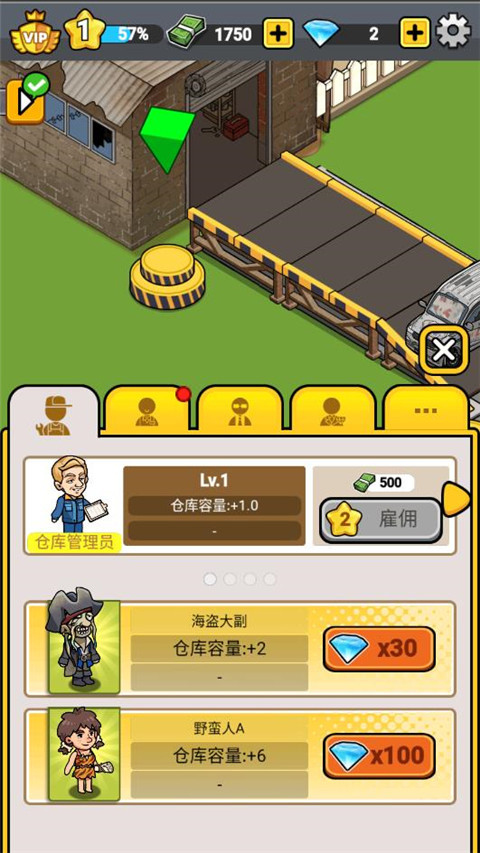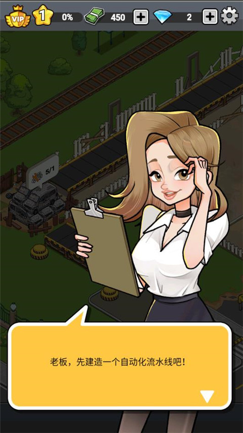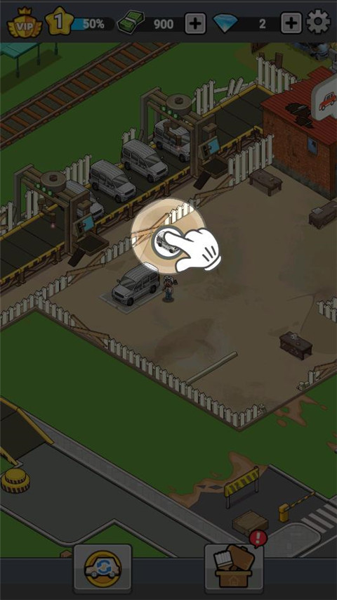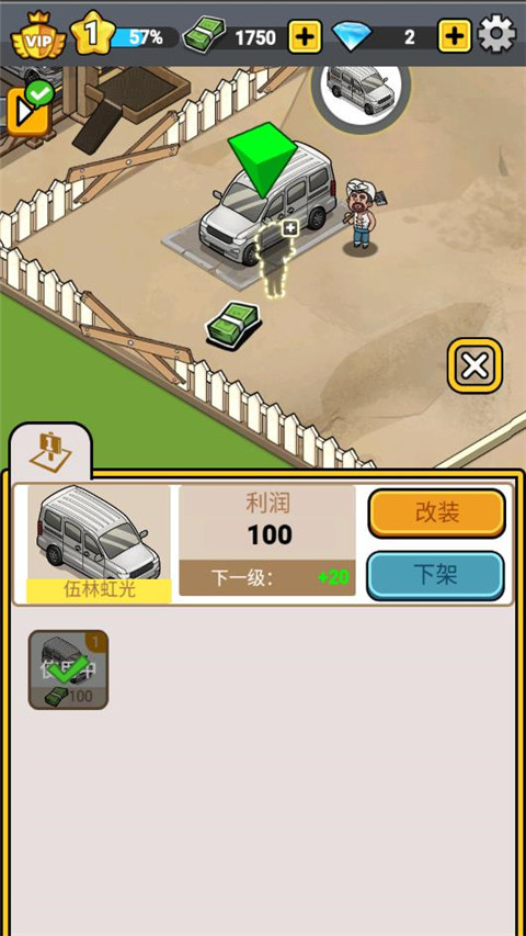 2、当完成了流水线的建造,接下来就为开店做准备吧,如图解锁第一个车位和车辆