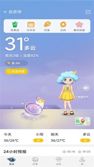 1、【AI指数】 覆盖运动、骑行、洗车、跑步场景,结合小时级天气数据与大模型,清晰展示未来24小时每个时段的适宜程度,并给出专属建议与智能提醒。 2、【大雨定点速报】 提供“雨前-雨中-雨后”全周期内逐小时的决策保障。在暴雨影响的关键56小时(-8小时至+48小时),给出详细提醒和可行建议,精准指引每一步行动。 3、【台风实时预报】 实时显示台风位置、强度与路径,整合多个预测模型,可显示多天台风预测,确保准确可信的信息,帮助您及时做出应对。 4、【48小时分钟级地图】 借助雷达图像,精确展示全球任一位置的降水、风力、空气质量等,可视化地图精确至分钟级、公里级,为出行提供有力参考。 5、【会员应季服务与健康关怀】 推出花期、滑雪、朝霞晚霞等应季特色服务;同时涵盖由天气变化引发的疼痛、过敏、流感等健康提醒,贴心守护您的生活与健康。 6、【地震预警】 依据您所处位置推送地震预警信息,科普地震常识,助力您从容应对灾害天气。软件功能