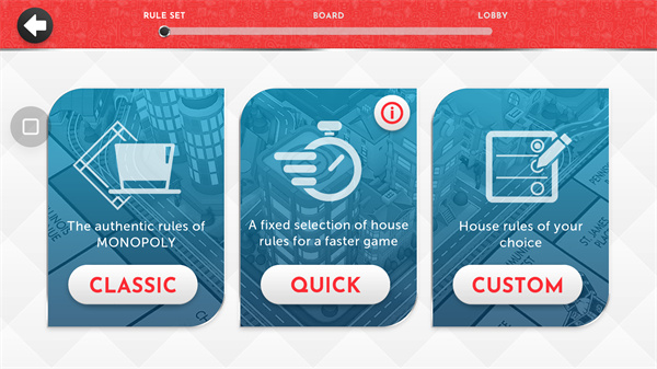 1、有匹配联机功能,可以与小伙伴一起玩; 2、自由房间创建,玩家可以自由选择游戏类型与难度,推荐玩家从建议开始锻炼,熟悉游戏规则; 3、随机事件会使玩家在游戏过程中获得阻碍或者助力,完全是随机的哦; 4、该游戏需要运气与策略相结合才能更好地赢下游戏; 5、趣味性十足,与好友对战才是最刺激最有意思的; 6、买卖房地产,灵活性十足,但是需要合理规划买卖计划,否则会很容易破产。monopoly大富翁手机版模式介绍