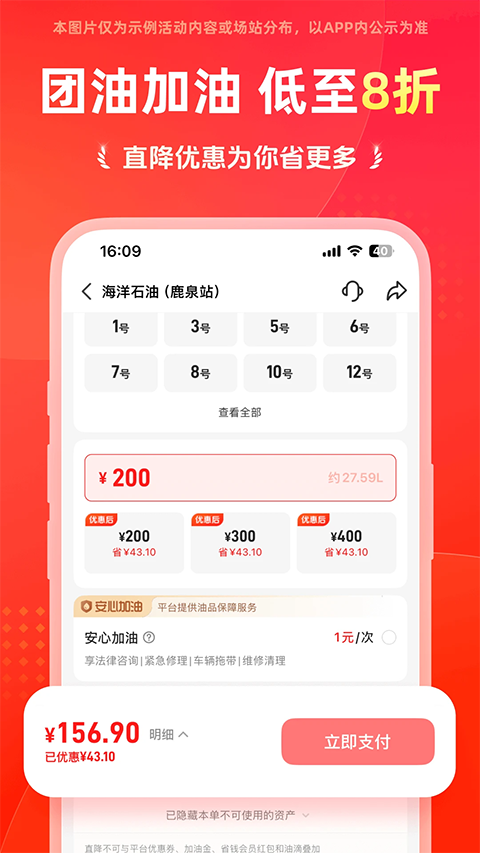 【燃爆双11超低折扣】 团油会员加油特惠,一单回本! 【新人红包注册可领】 新用户注册立得50元券红包,加油更划算! 【合作油站到处都有】 全国超万座油站覆盖,找站便捷,分布密集! 【油价变动随时掌握】 实时油价涨跌信息,一手掌握,超低成本加油! 【认证可领32元券包】 首次认证车主得4张8元可叠加券,加油折上折!能链团油app加油教程