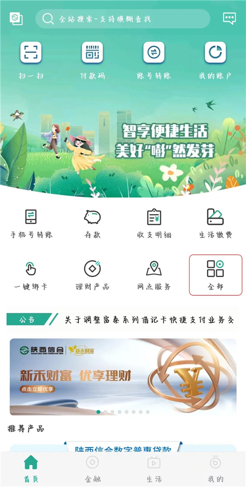 1、用户登录陕西信合APP,点击全部,点击定活两便。