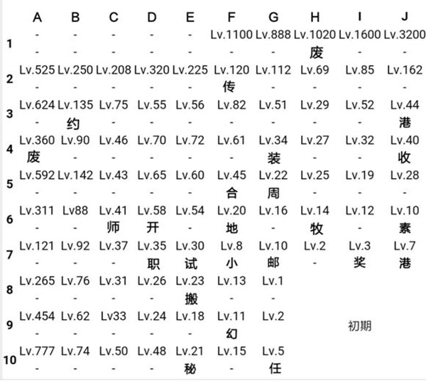 Lv162-250区域(最高Lv320)开放区域60个(和平度69%)