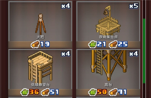 火把:拥有优质的砖块20个以上,铜币135以上