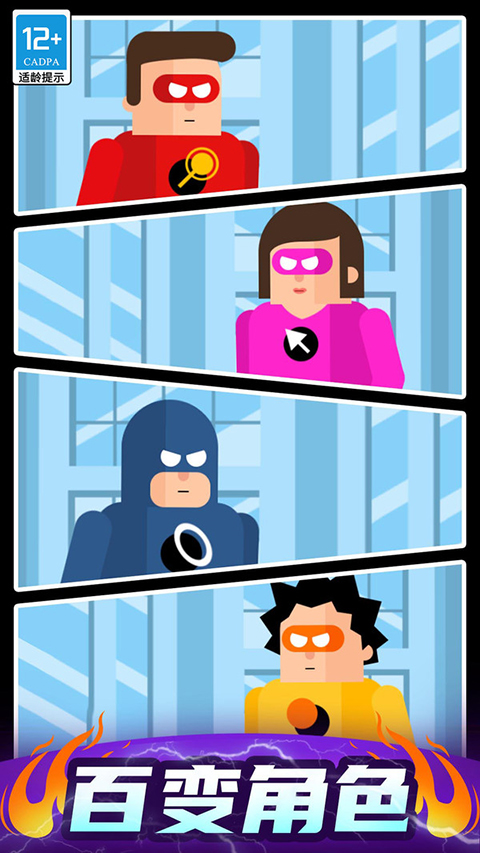 1、手指轻轻点一点,敌人立刻被消灭,简单上手,乐趣无穷; 2、游戏内有多款不同超能力的超级英雄任你挑选; 3、轻松解压,咻咻咻,看敌人被削成碎片; 4、趣味而又魔性的超能力,一关又一关,根本停不下来。炮击达人超能力角色介绍