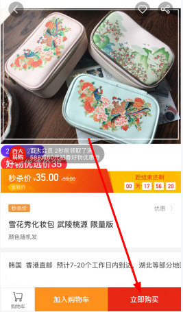 2、接着我们进入到商品的详情界面,在该界面点击右下角的“立即购买”按钮。
