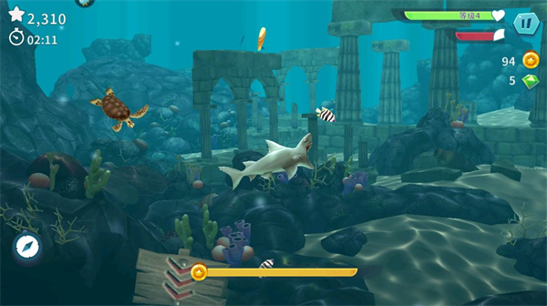 1、释放你的掠食者本能 在这款不是吃就是被吃的鲨鱼进化模拟游戏中,你的任务很简单:进化,并存活。从小鱼开始,沿着海洋食物链向上成长,多阶段进化你的鲨鱼,直到你称霸海底世界!狩猎、捕食与攻击鲸鱼、各种鱼类与鸟类,还有更多生物。这款离线游戏可让你在没有Wi-Fi 的情况下进行探索与游玩。 2、穿戴强大装备与配件 使用喷射背包、激光甚至时髦帽子等超棒配件来强化你的鲨鱼!让你的鲨鱼在开放世界游得更快、咬得更凶猛,还能生存得更久。 3、看看你的鲨鱼宝宝伙伴 探索开放世界的过程中需要协助吗?招募鲨鱼宝宝与你一起狩猎!每只鲨鱼宝宝都有独特的能力来帮助你完成旅程。深入鲨鱼进化游戏,将你的海洋生物进化,见证鲨鱼宝宝的力量和你一起成长。 4、饥饿生存战 海洋充满了惊喜和挑战。在这款离线游戏里,鲨鱼的工作就是不断进食和进化。警惕潜伏在深处的危险,但也要知道,每一餐都会让你变得更强。在经典的复古鲨鱼游戏中吃下一切,体验生存的刺激吧!饥饿鲨进化国际服新手指南