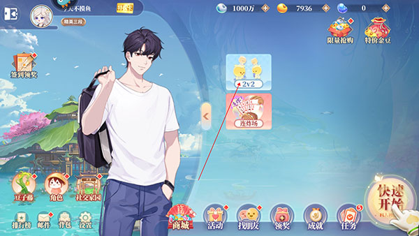 1、先打开游戏,在主界面找到2v2。