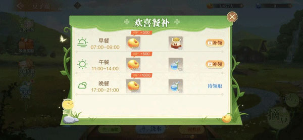 还有在吃早中晚饭期间,上线即可领取免费金豆。就在豆子藤页面左边的任务栏上,错过的小伙伴也别担心,因为可以补领。
