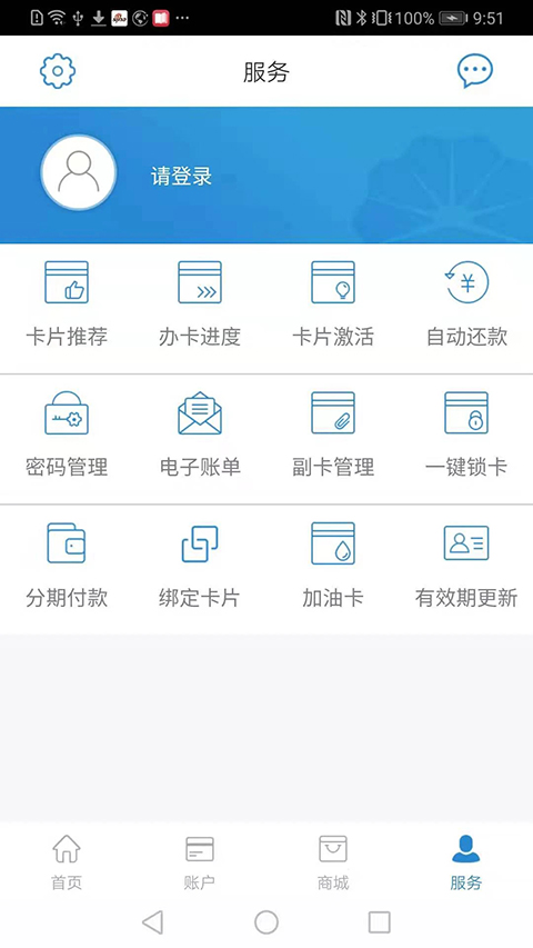 1、“首页”提供精选功能的快捷入口、及时公告、积分兑换、精彩活动、权益服务等。 2、“账户”提供账单查询、分期付款业务、分期明细查询等功能。 3、“商城”提供分期商城、积分换礼功能。 4、“服务”提供卡片推荐、办卡进度查询、卡片激活、自动还款设置、密码管理、电子账单、附卡管理、一键锁卡等功能。昆仑信用卡加油200减66怎么使用
