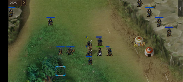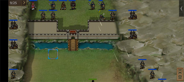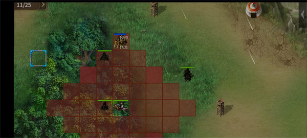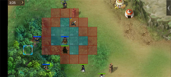 10.注意卡好敌军攻击距离,城内敌军攻击范围内无我军则不出击。让李明进入城中攻击右侧步兵,触发再动,走出敌军攻击范围。
